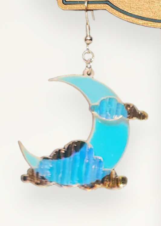 Holographic Crescent Moon and Cloud Dangling Earrings